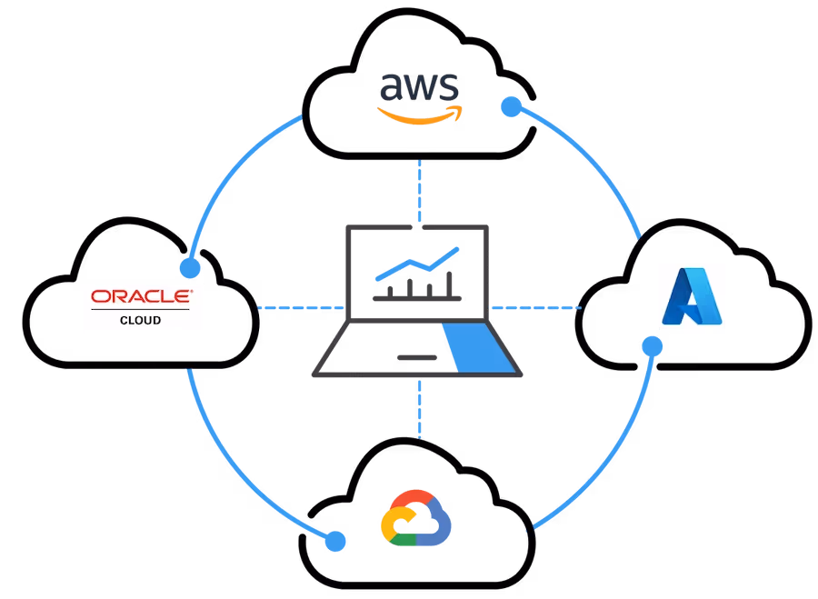 Multi-cloud involves using services from two or more cloud providers, such as Amazon Web Services (AWS), Microsoft Azure, Google Cloud Platform (GCP), and Oracle Cloud Infrastructure (OCI), within the same organization. Instead of placing all applications, workloads, and data in one cloud environment, companies distribute them across multiple cloud platforms.