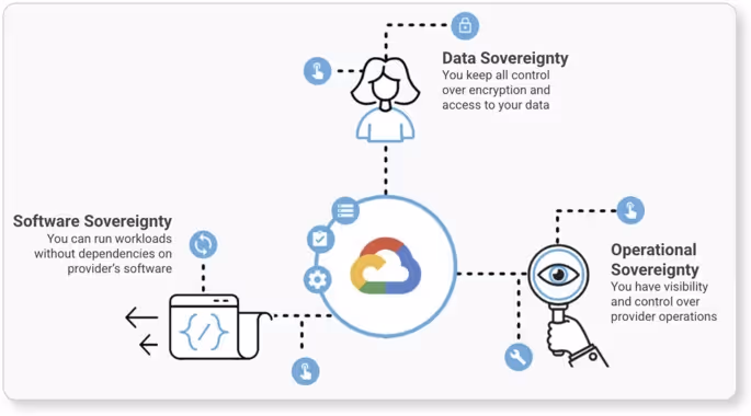To clarify how each pillar contributes to cloud sovereignty, here’s an overview of the three key components.